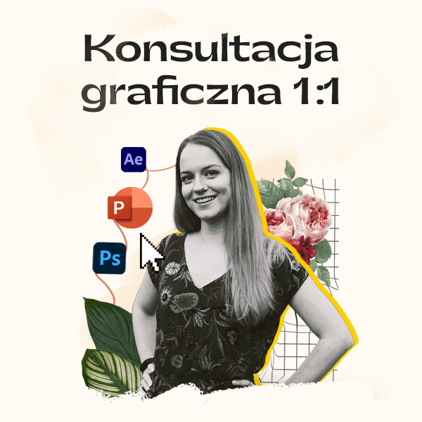 - Rozwiać Twoje wątpliwości w programie graficznym Photoshop, Illustrator, Indesign, After Effects oraz Figma, jeżeli używasz ich podczas codziennej pracy