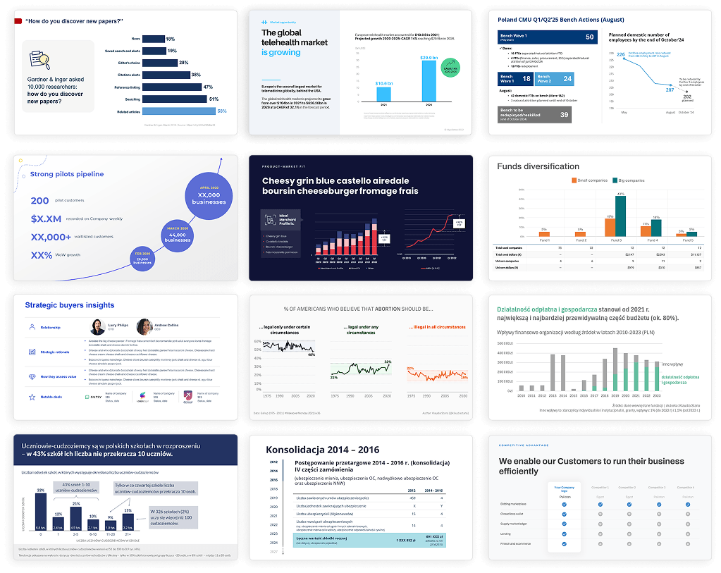 Każdy slajd, który jest nieczytelny, to kolejny dzień, w którym Twoje rekomendacje są ignorowane, a czas decydentów marnowany. Ale każda prezentacja to też szansa, by budować wiarygodność firmy w oparciu o profesjonalny i klarowny przekaz.